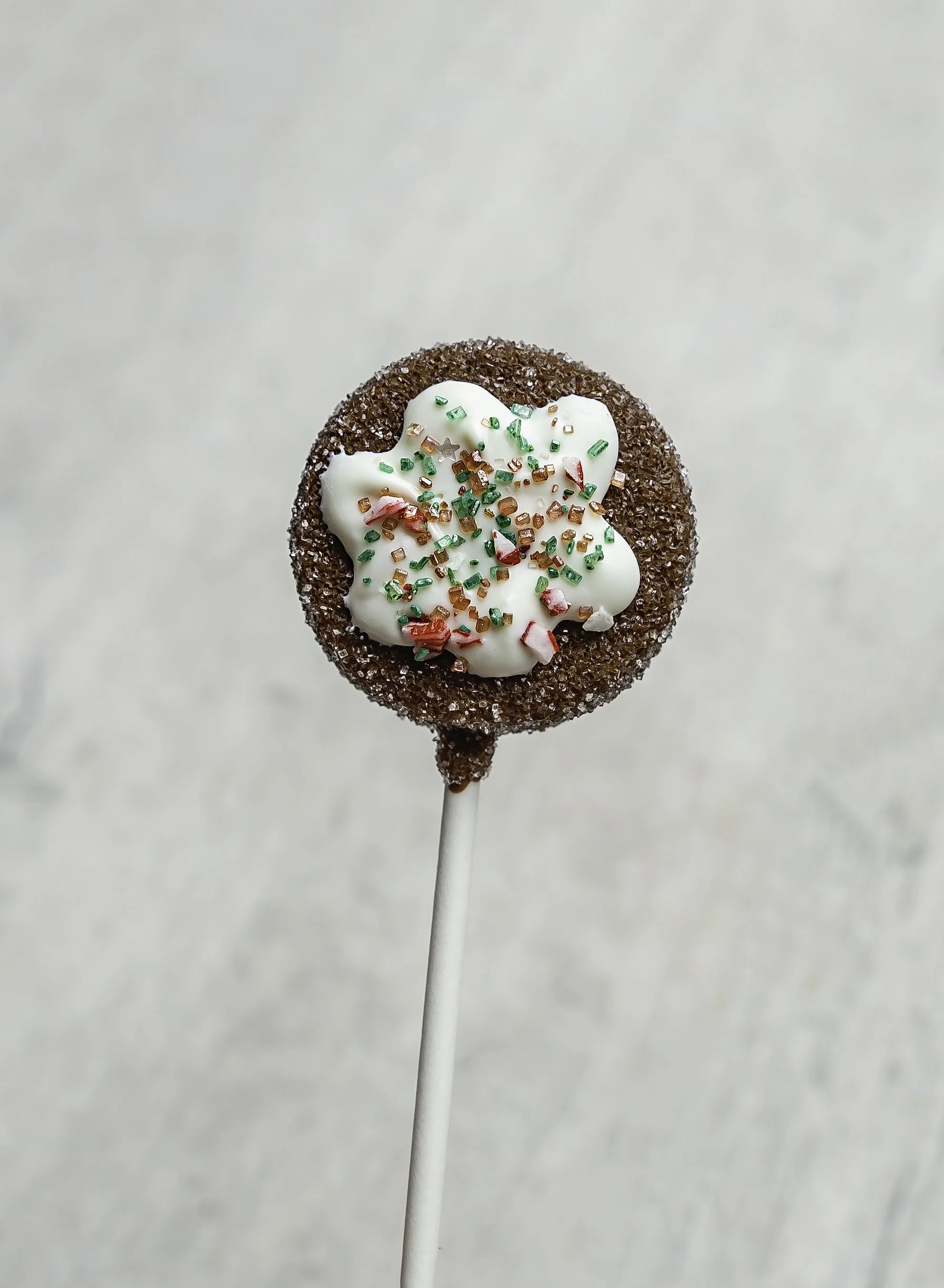 Indulge in the holiday spirit with our Peppermint Fudge Cake Pop! Each pop features a rich, fudgy center infused with the refreshing essence of peppermint, all expertly coated in decadent chocolate. Topped with festive sprinkles, this delightful treat is perfect for celebrating the season or as a unique gift for friends and family.